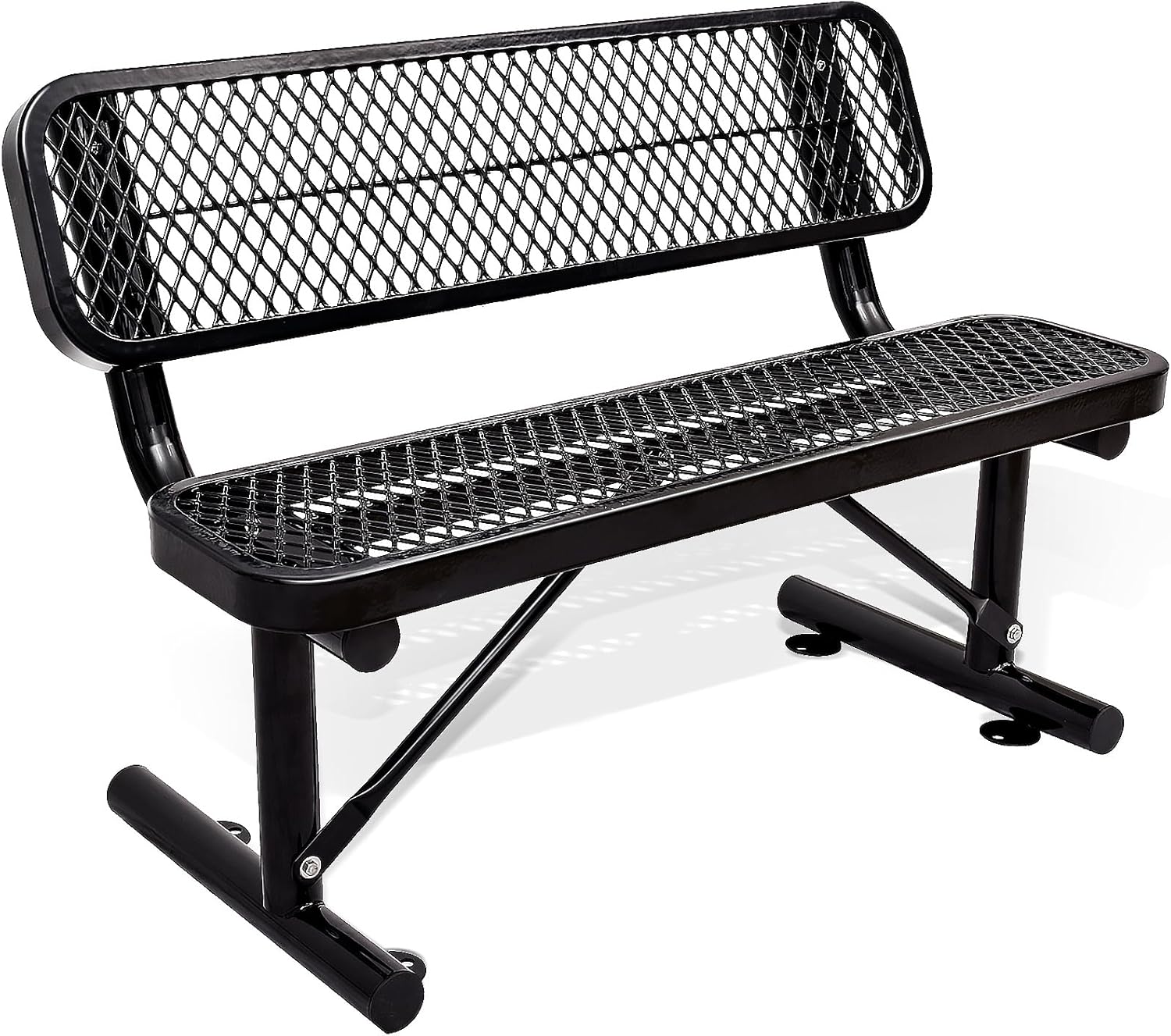 Heavy Duty Park Bench with Back Portable Frame, Outdoor Metal Park Bench with Backrest, Steel Mesh Outdoor Bench for Garden, Lawn, Patio, Porch, Park, Yard