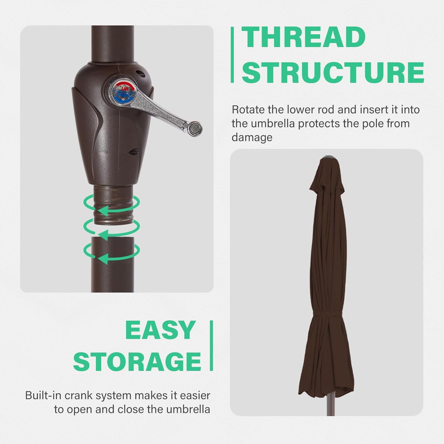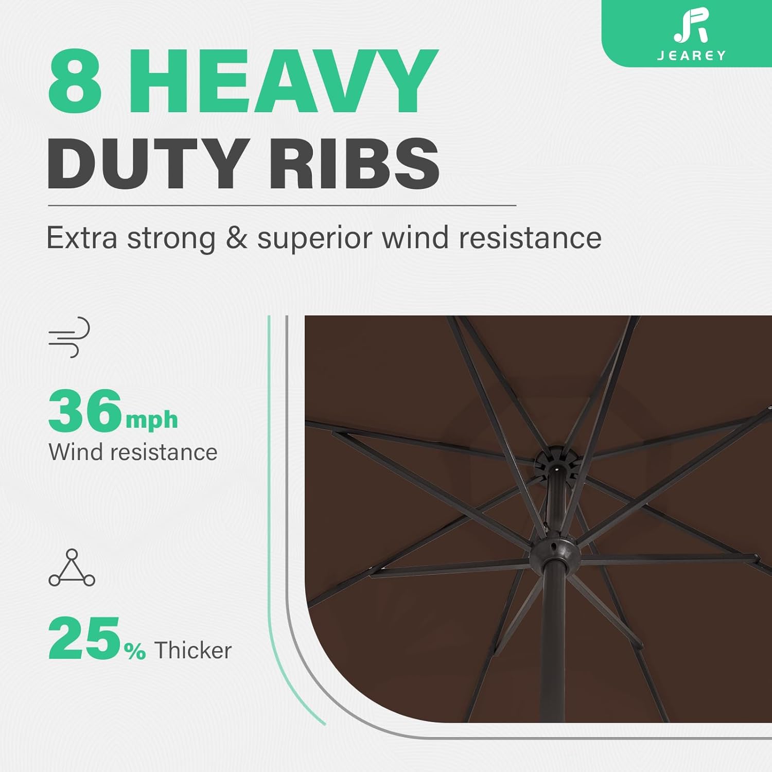 JEAREY 12' Patio Umbrellas Outdoor Table Market Umbrella w/Crank, 8 Sturdy Ribs, UV Protection Waterproof Sunproof(Brown)