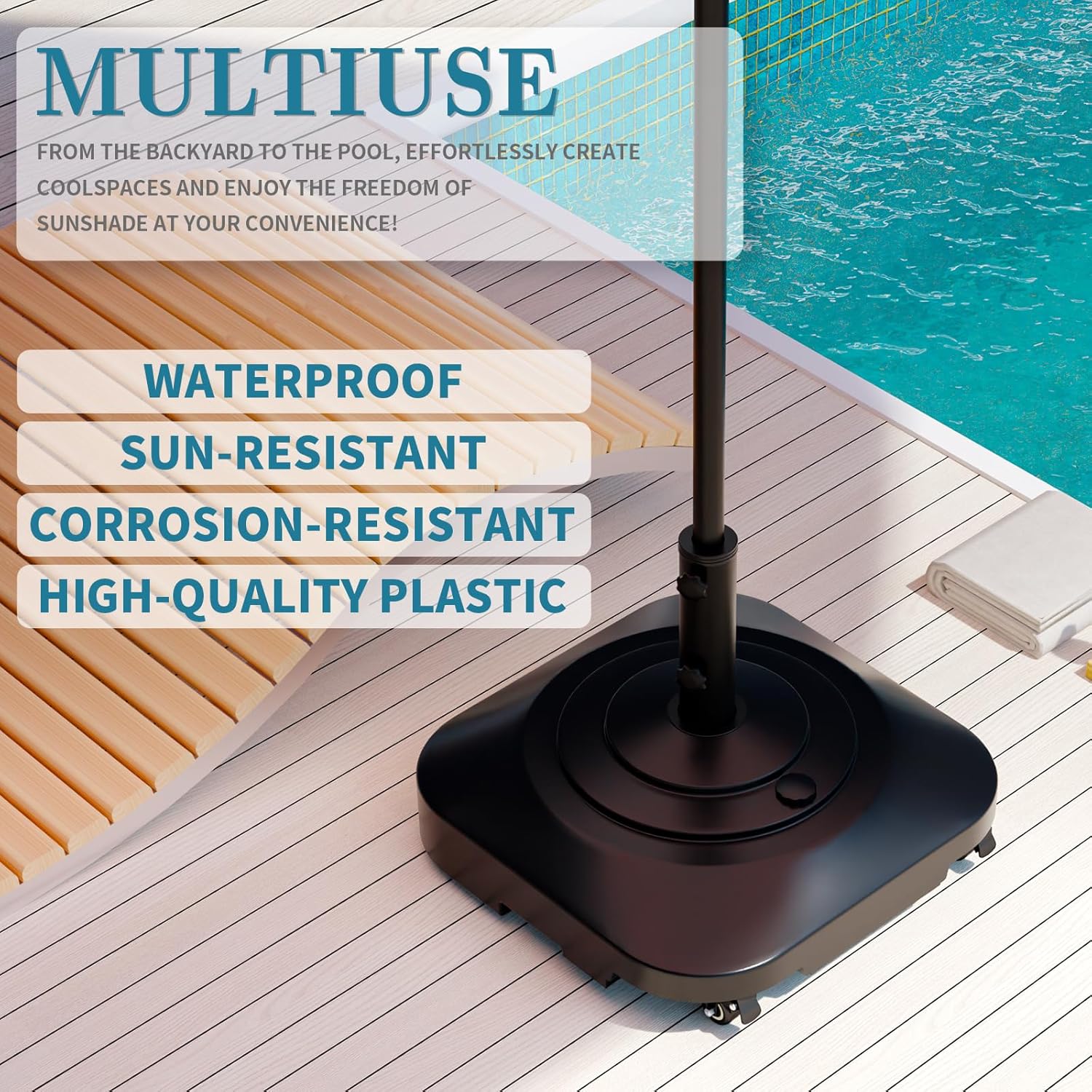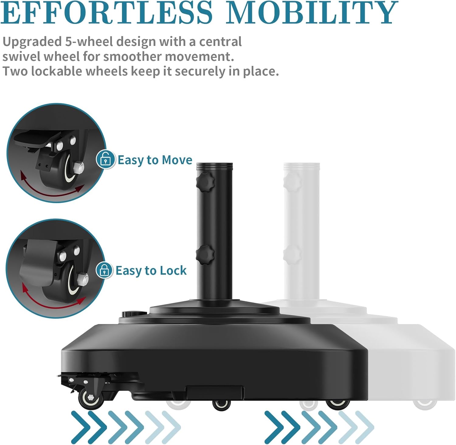 Patio Umbrella Base,Heavy Duty Umbrella Stand with 5 Wheels, Max 135lb Fillable Umbrella Holder Wind-Resistant, Mobile Square Market Stand for Outdoor, Deck, Poolside, Lawn, Fits Most Sized Umbrellas