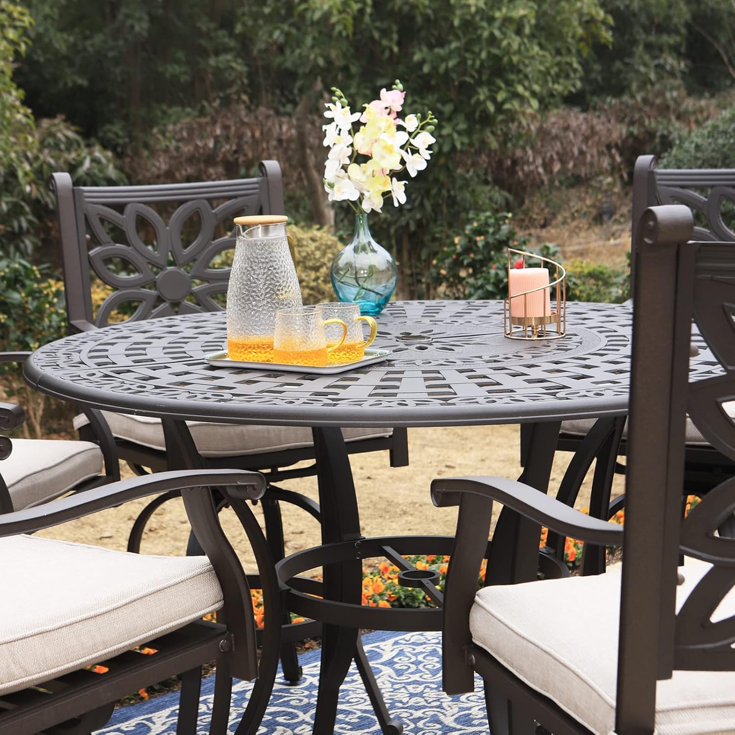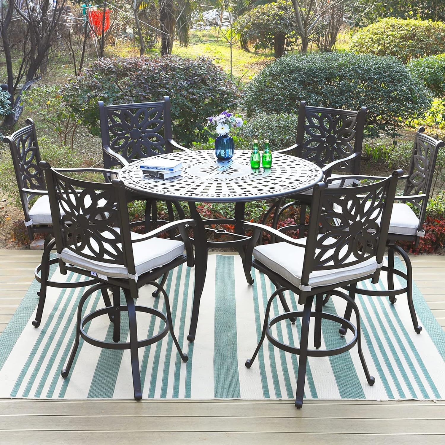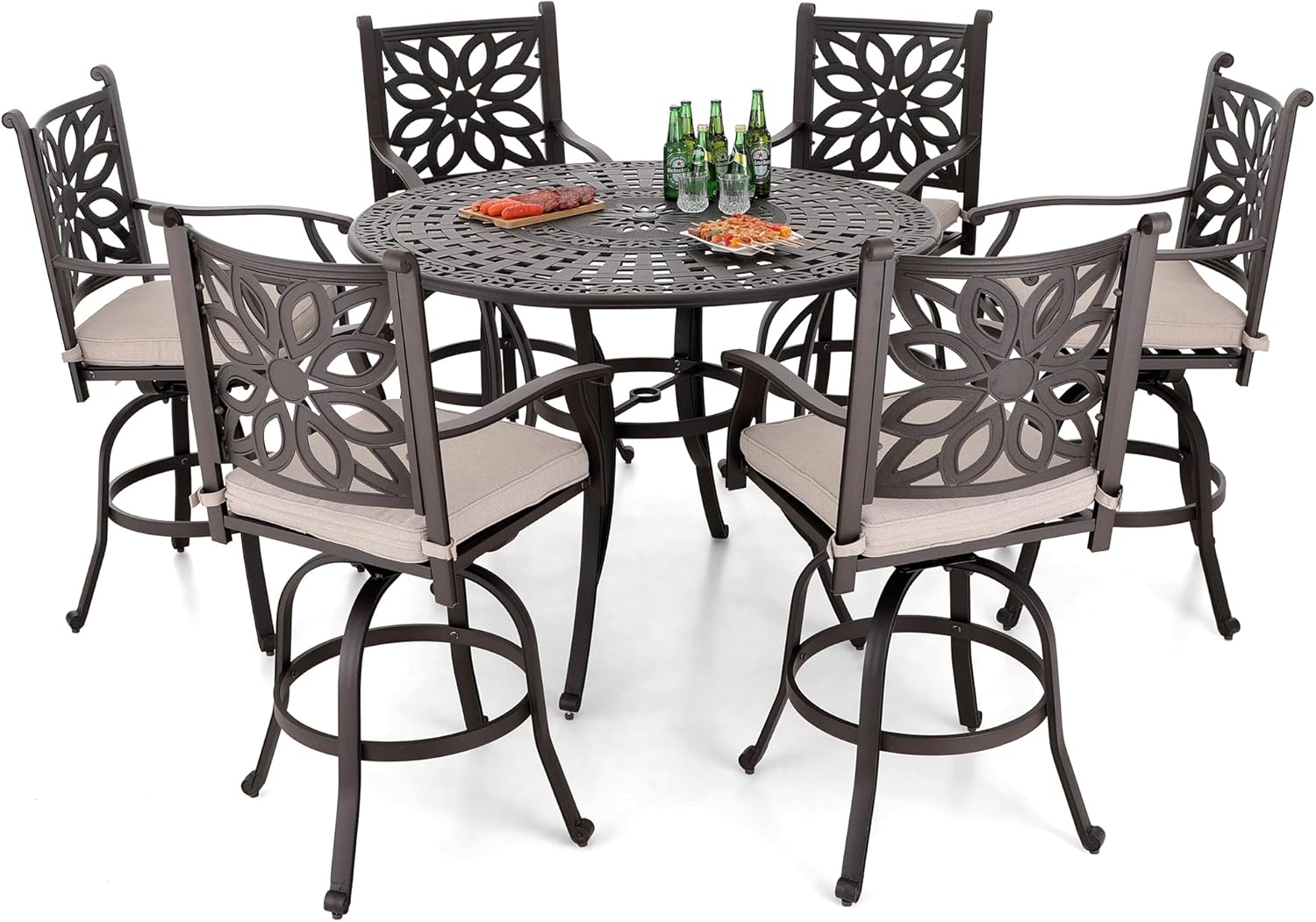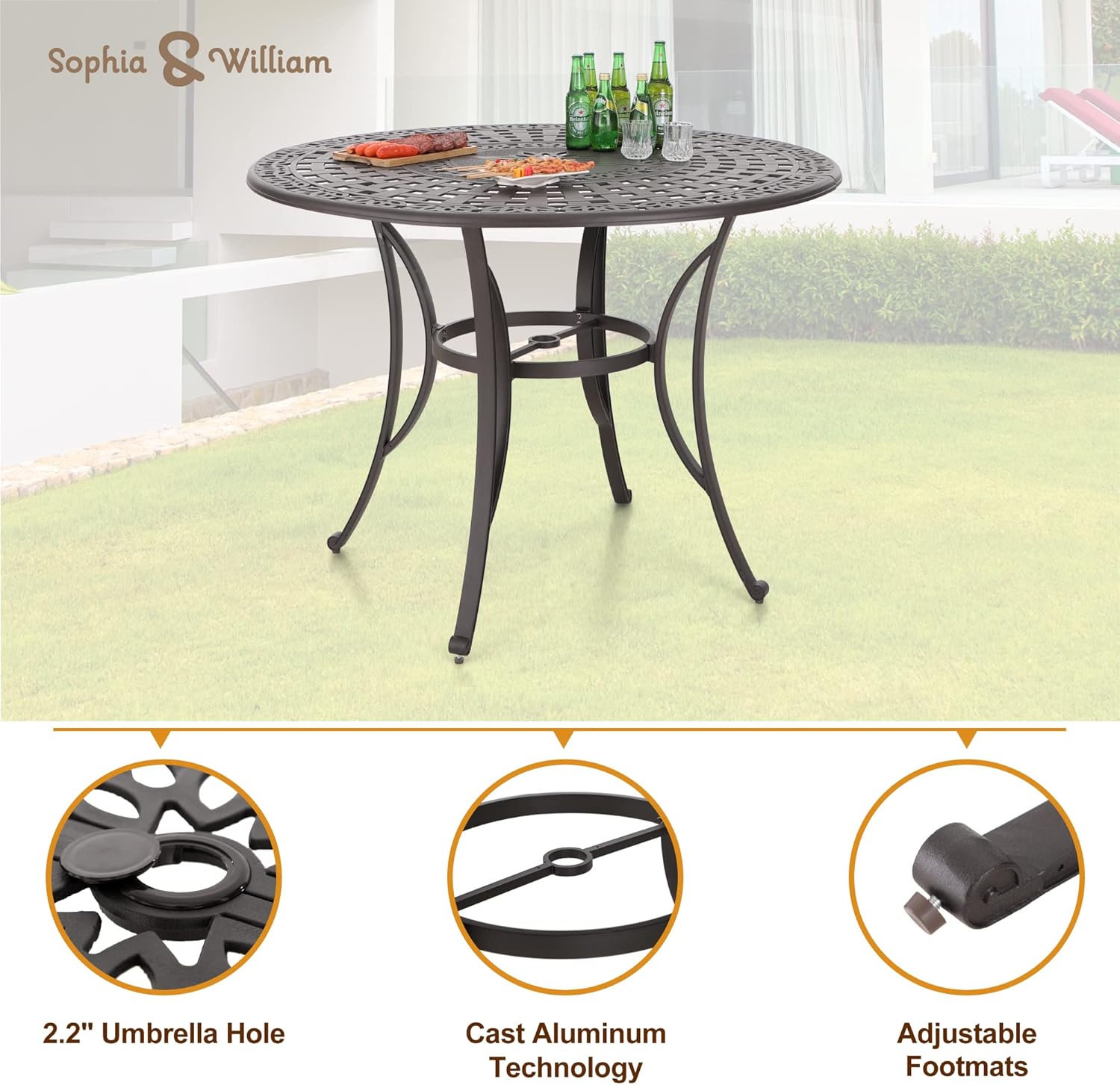 Sophia & William 6-Person Cast Aluminium Patio Bar Height Table Round, Outdoor Tall Bistro Pub Height Table with 2.2" Umbrella Hole for Porch Balcony Backyard, Bronze