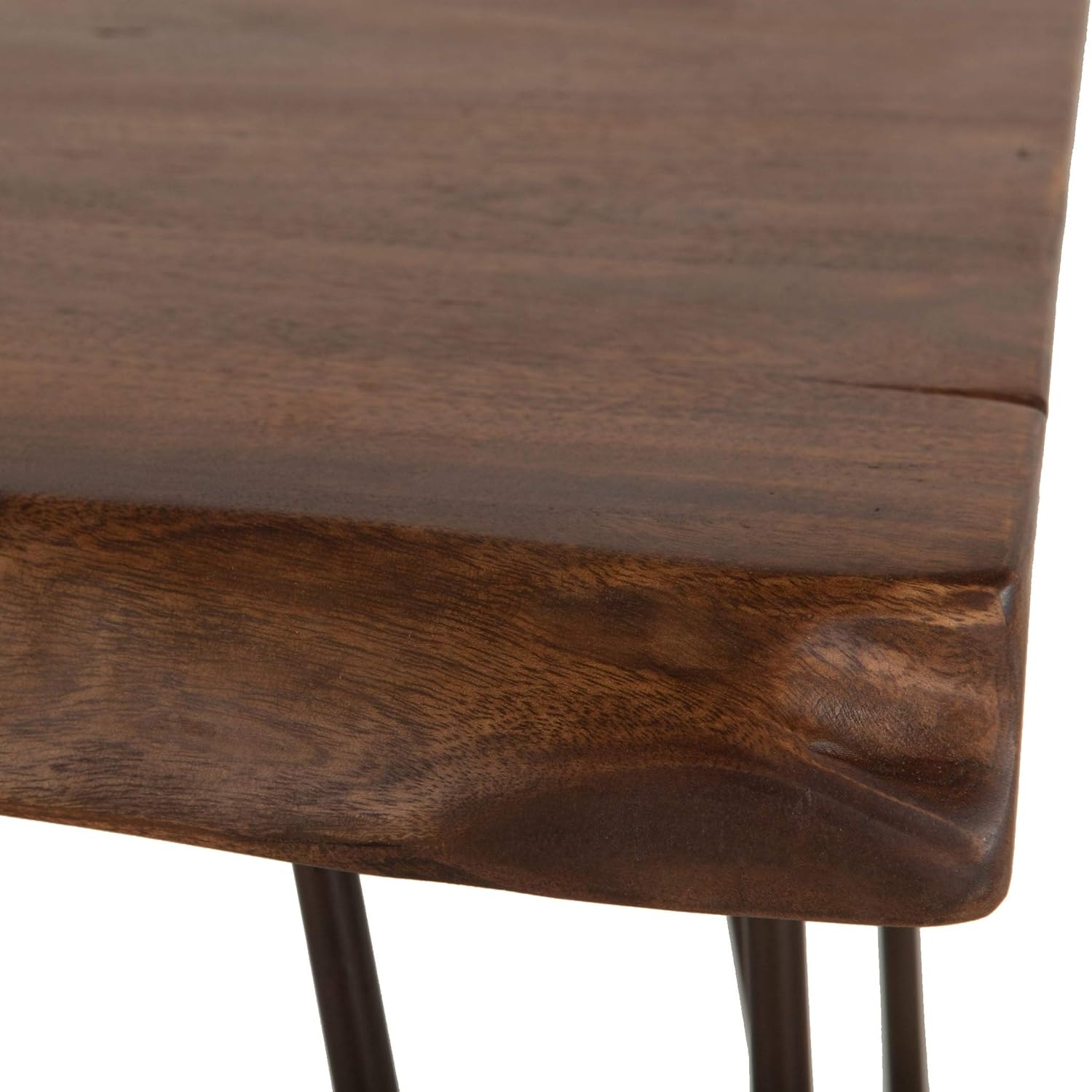 UKN Acacia Live Edge Rectangle Side Table in Natural Black Metal Reclaimed Look